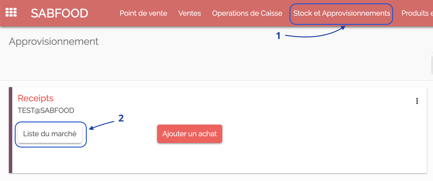 Le gérant ou le superviseur des achats, crée la liste de marché pour le coursier et réceptionnera les articles et quantités livrées.